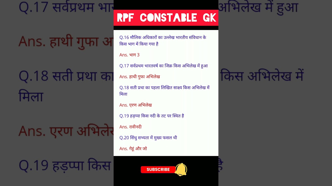 RPF Constable Gk Questions - 4 #gk #rpfgk #rpfgkgs #gkquiz #rpfgkquestion