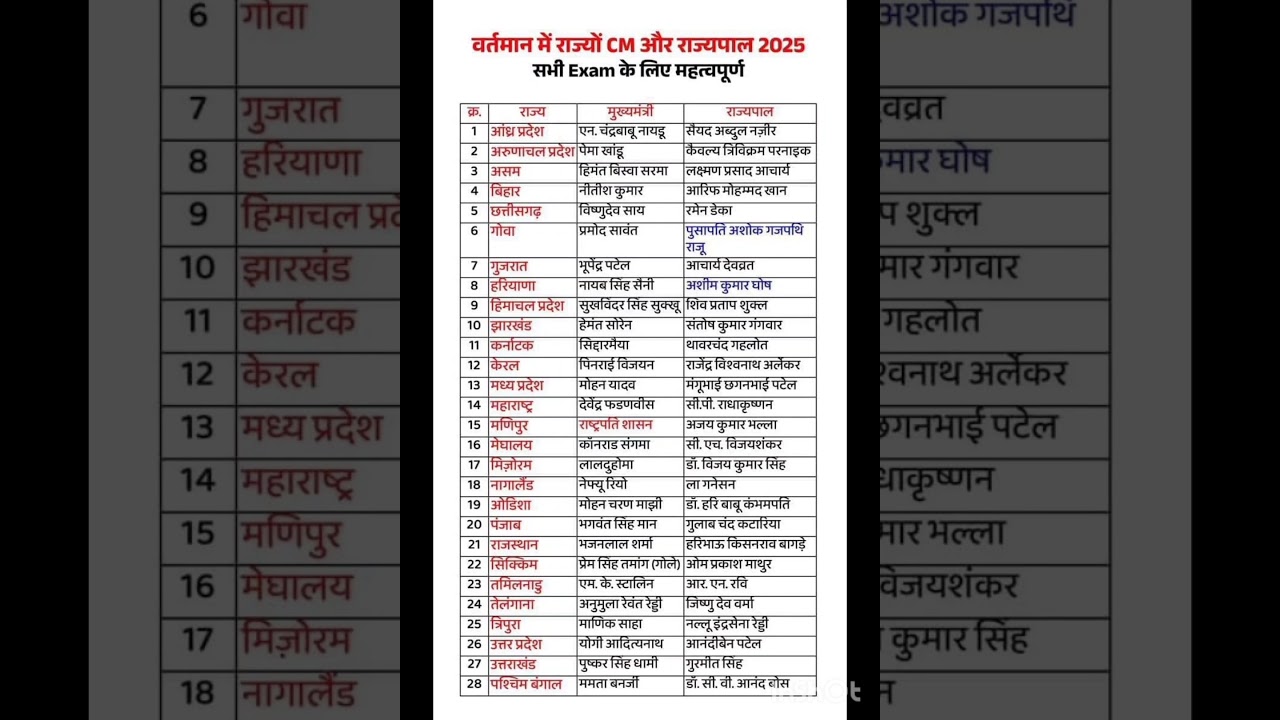 वर्तमान में राज्य के सीएम और राज्यपाल 👍 india Gk with short trick ✍️#ssc #gk