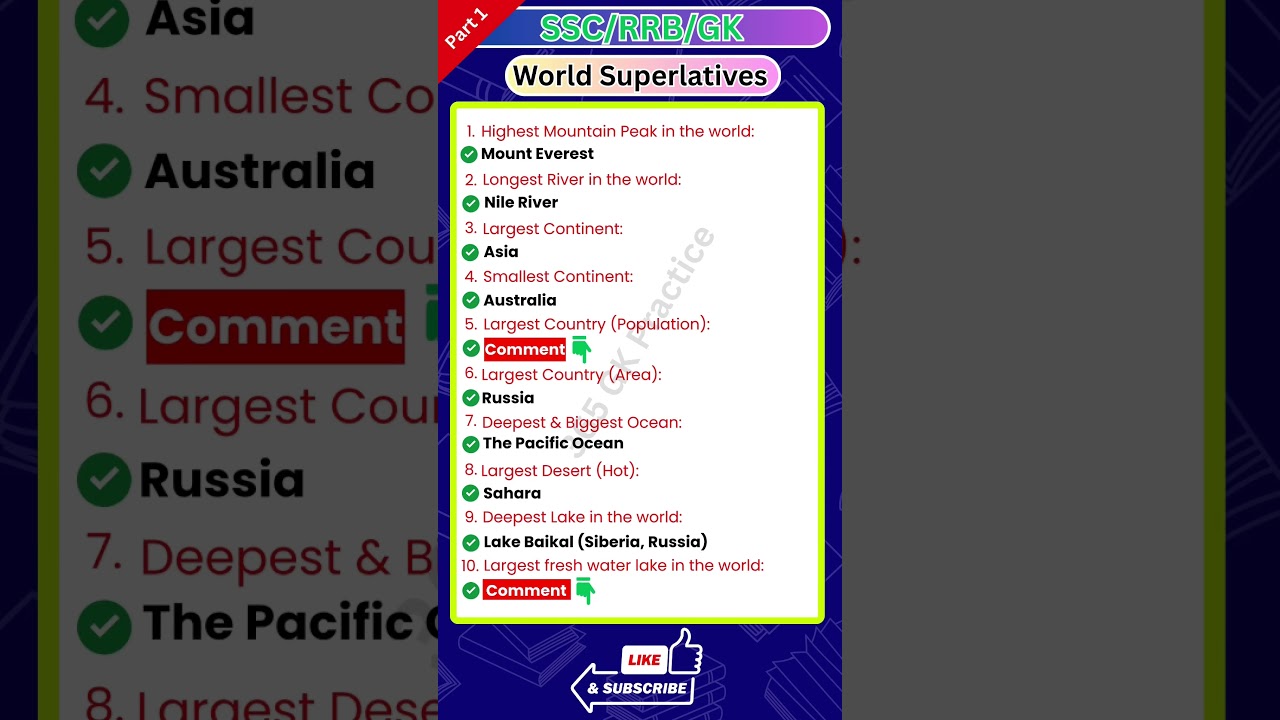 World’s Biggest, Highest & Longest | Superlatives GK for Exams 2025 | Part 1
