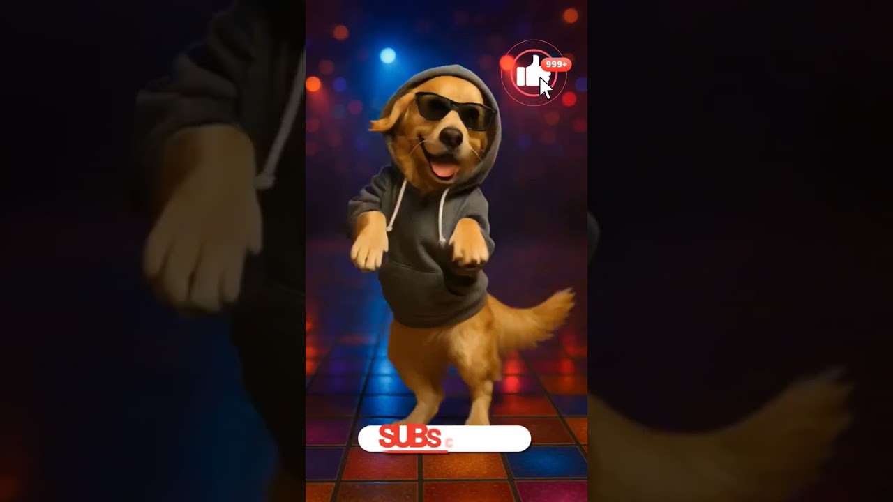 A cute golden retriever dog dance, wearing sun glass