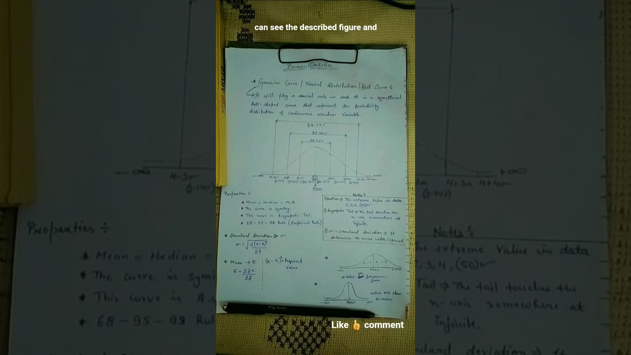 Gaussian curve/normal distribution/mean, median mode #mba #bcom #mcom #youtubeshorts #education#love