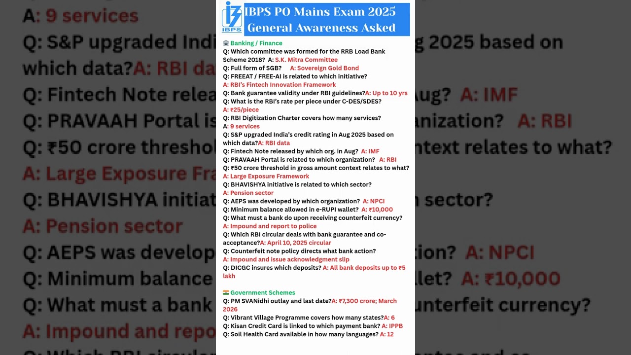 IBPS PO Mains GA 2025 | 50+ Most Asked Current Affairs & Banking Qs IBPS PO Mains 2025 | General Awareness Paper Analysis & Expected Cut Off